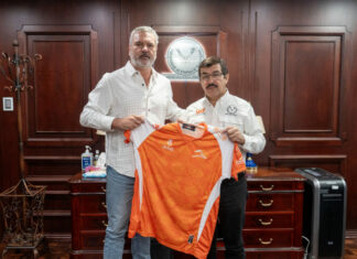 El rector Dámaso Anaya Alvarado le dio la bienvenida y le entregó la camiseta del equipo,